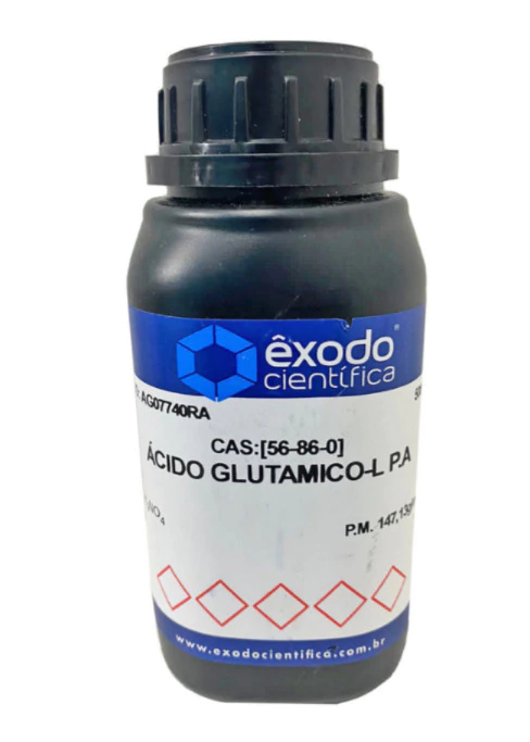 Acido Glutamico-L Pa 500G Exodo Cientifica nº CAS: 56-86-0 , produto para uso laboratorial. Os reagentes possuem laudo analise e FISPQ (Ficha de Segurança de Produtos Químicos)