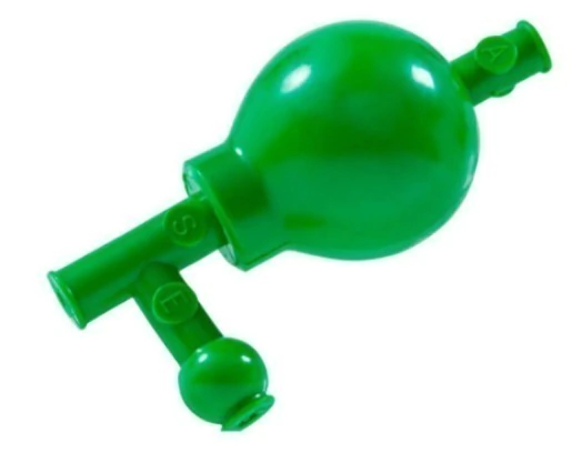 Também chamado de "pêra de sucção", este pipetador auxilia na sucção de líquidos em pipetas de forma controlada e precisa, sendo ideal para procedimentos laboratoriais variados.